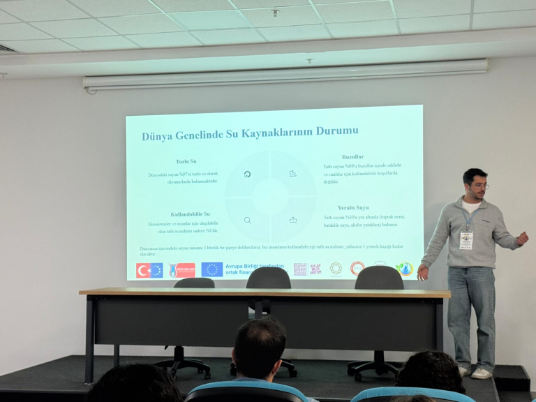 Suyun sürdürülebilir yönetimi, enerji verimliliği ve iklim değişikliği karşısında gençlerin rolü üzerine farkındalık yaratmayı hedefleyen etkinlikte, Erasmus+ programının çevre temalı fırsatları katılımcılarla paylaşıldı.